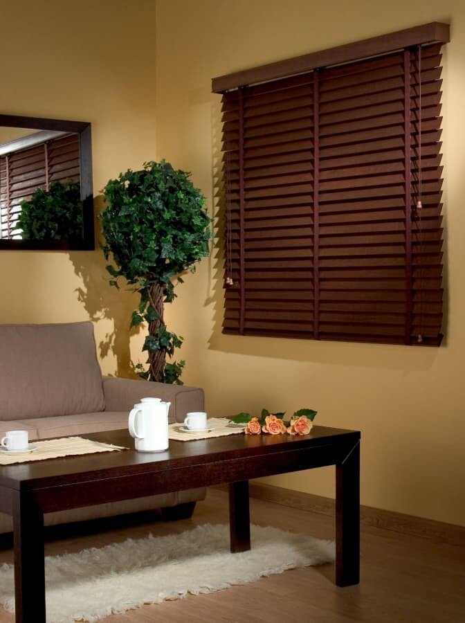 Деревянные жалюзи на окна — солнцезащитная система из плоских деревянных или бамбуковых пластин (ламелей), которая позволяет регулировать освещенность помещения, создают уютную, теплую атмосферу и являются декоративным элементом, подходящим для интерьеров в разных стилях.
