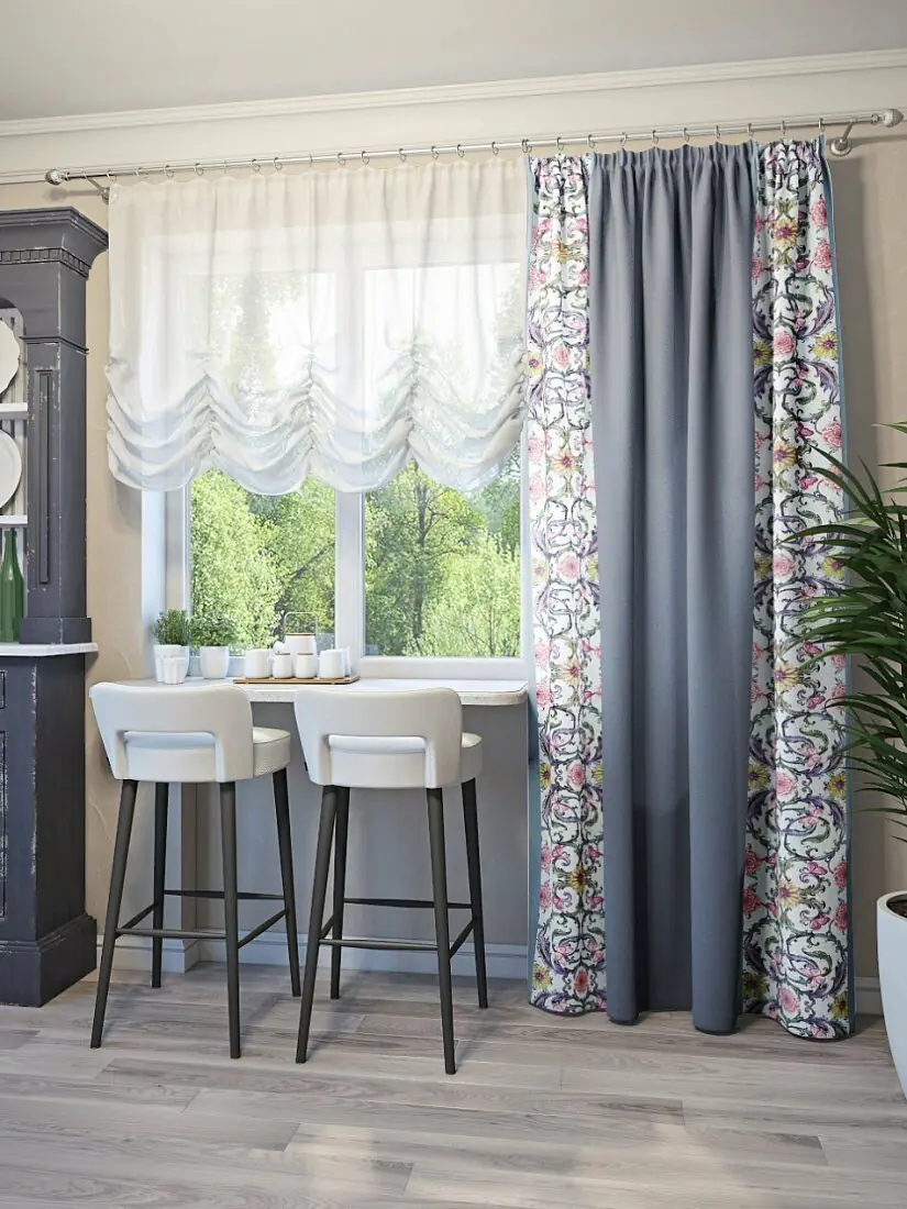 - Многослойность. На обычном однорядном карнизе можно повесить только одну штору с люверсами. Для создания многослойных композиций потребуется двухрядный карниз.